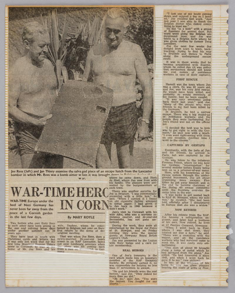 Letter and article 'English pilot, shot down above Peer, meets his helpers after 37 years again'.