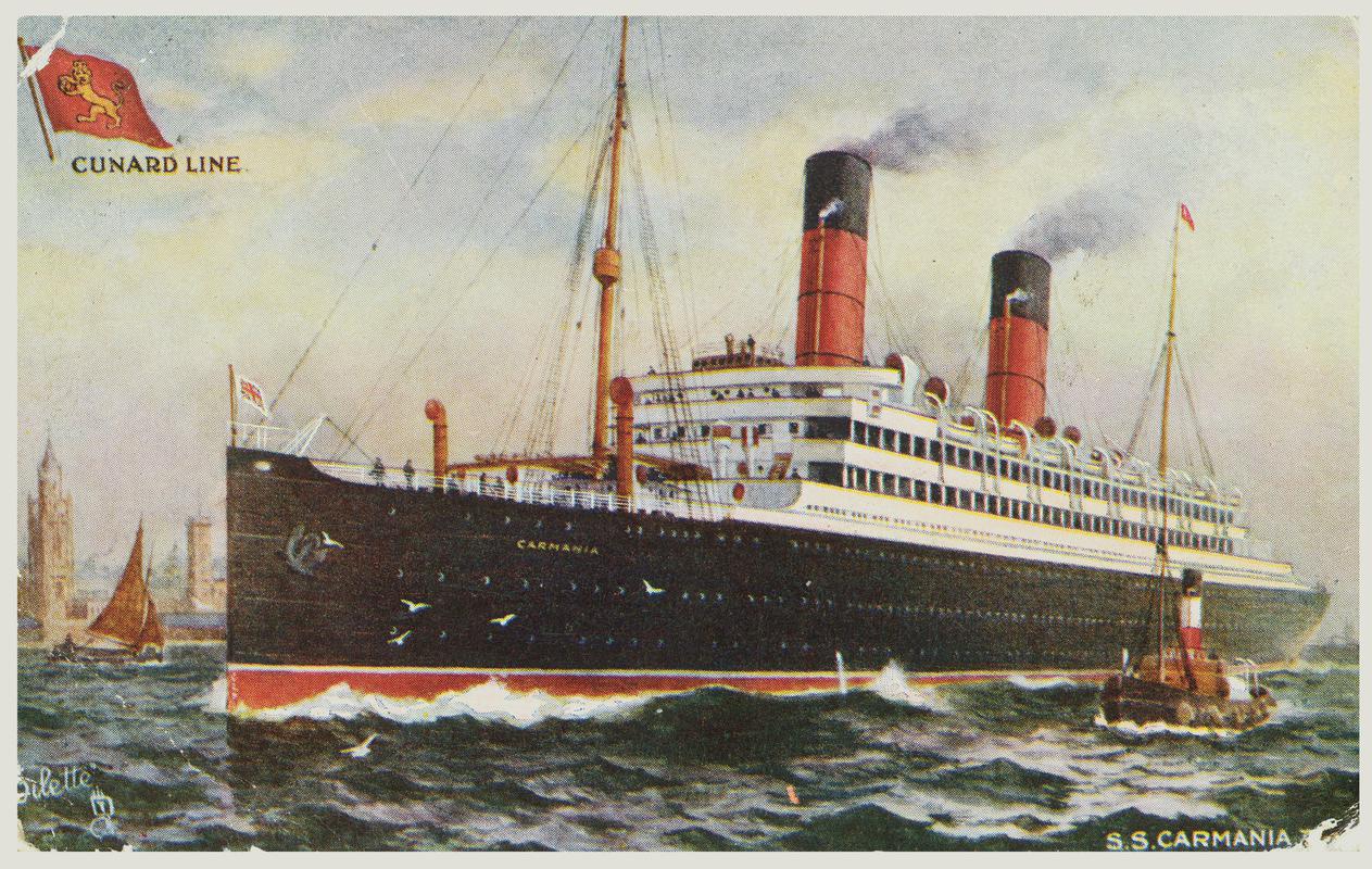Postcard showing sailing vessel entering the Bute West Dock basin with Pierhead building in the background. Unused.