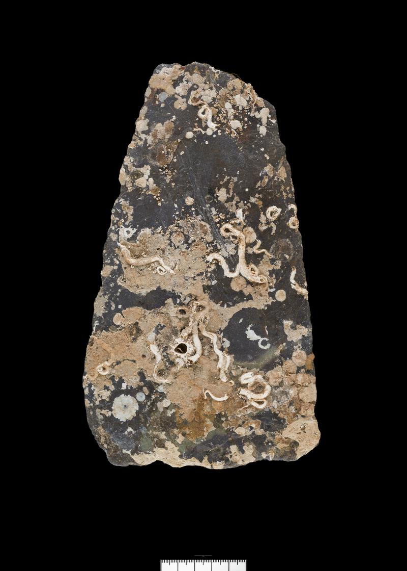 Wrought steel slate ripper; flat blade, barbed at end; with steel handle.