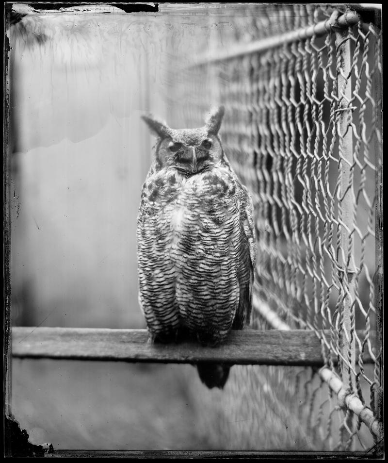 Glass negative showing an eagle perched on a rock at Bristol Zoological Gardens, Clifton, March 1854.