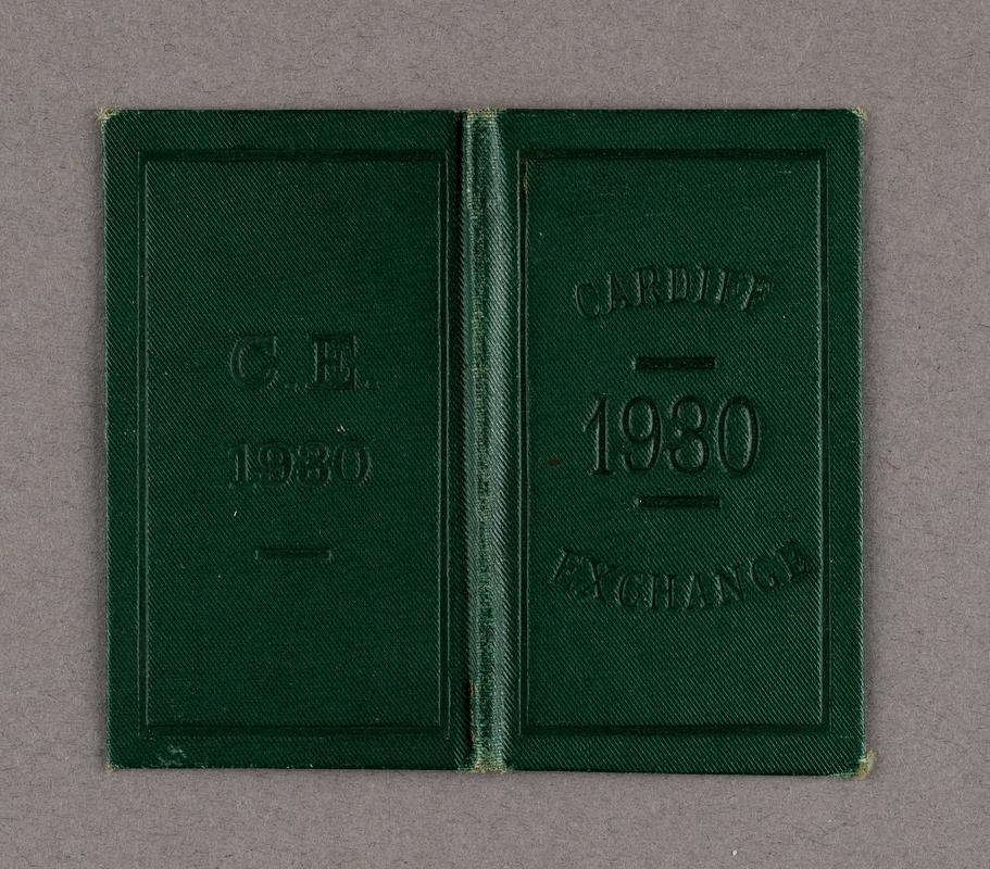 F.C.J. Matthews's Associate Member's Ticket for the Coal and Shipping Exchange (Cardiff) Ltd., No.694, dated 1922. Red card folded in two. Gold lettering on front - Cardiff Exchange, 1922.
