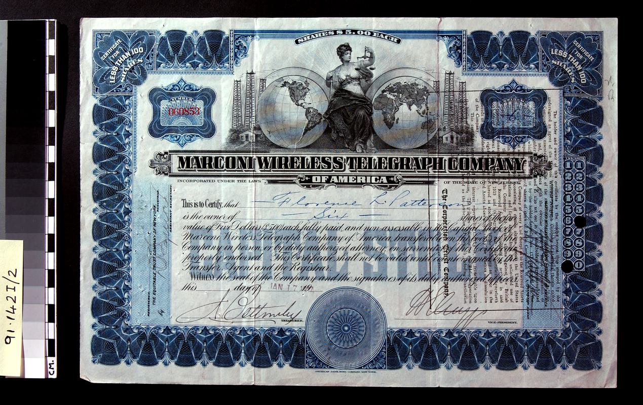 Marconi Wireless Telegraph Co. Ltd, share certificate