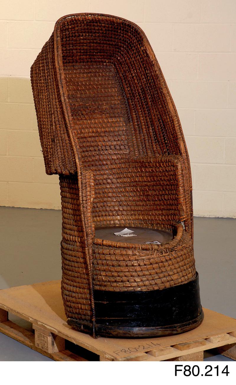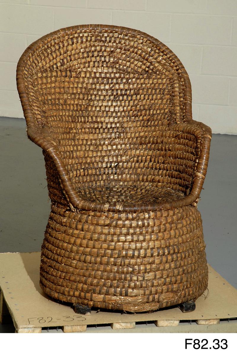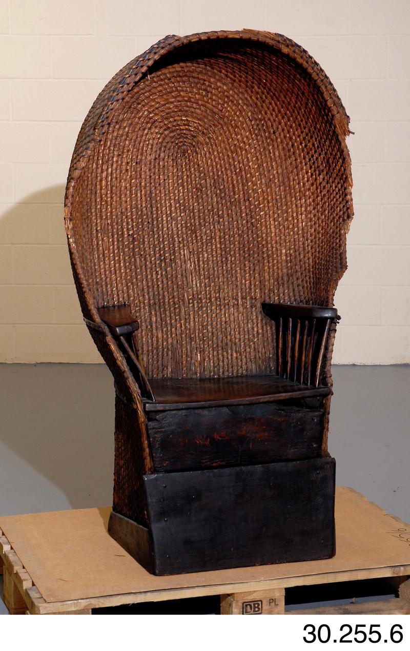 Cadair a wnaed gan Harri Clun Bren, Dinas Cross, Abergwaun, 1850au. Roedd yn teithio o gwmpas ffermdai lleol yn creu cadeiriau a basgedi gwellt.