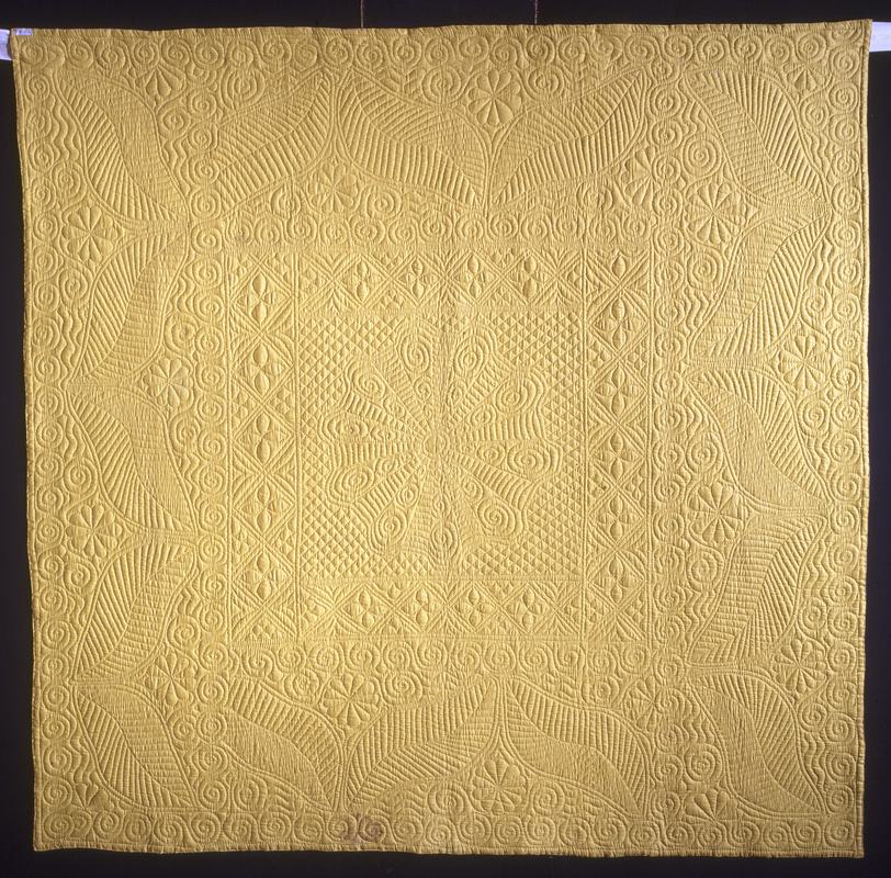 Wholecloth quilt made in the late 1800s by Mrs Mary Thomas of Penclippin Farm, Henllan Amgoed, near Carmarthen.