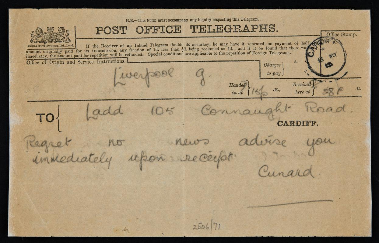 Bu farw Owen Ladd pan gafodd yr RMS Lusitania ei tharo gan dorpido Almaenig ar 7 Mai 1915. Ganwyd ef ym 1882, yn fab i William a Phoebe Ladd, The Mount, Eglwyswrw, gogledd Sir Benfro. Ym 1911 gadawodd Gymru i ymuno â’i frawd, David, oedd yn fasnachwr coed yn Winnipeg, Canada. Ym mis Mai 1915 roedd yn dychwelyd i Gymru er mwyn ymweld â’i deulu. Roedd hefyd yn ystyried ymuno â’r fyddin.