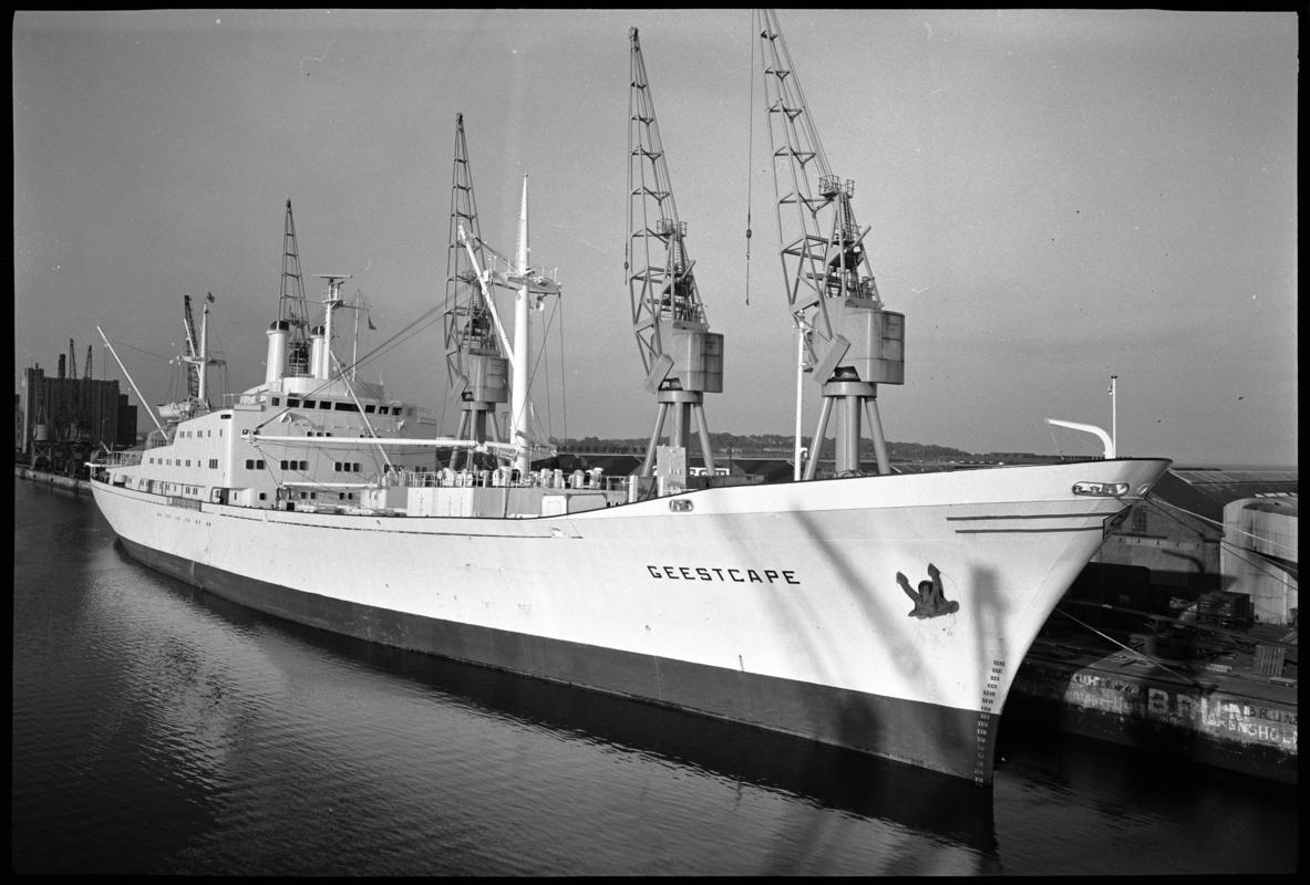Starboard bow view of M.V. GEESTCAPE, August 1972.