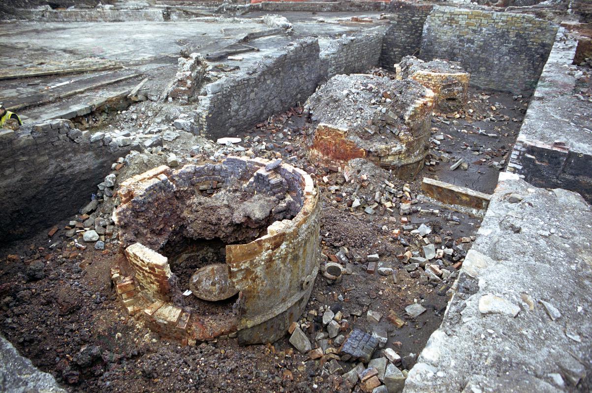 Kilgetty ironworks, Stepaside, showing ruinous front elevation of block of beehive coke ovens, viewed from north east.