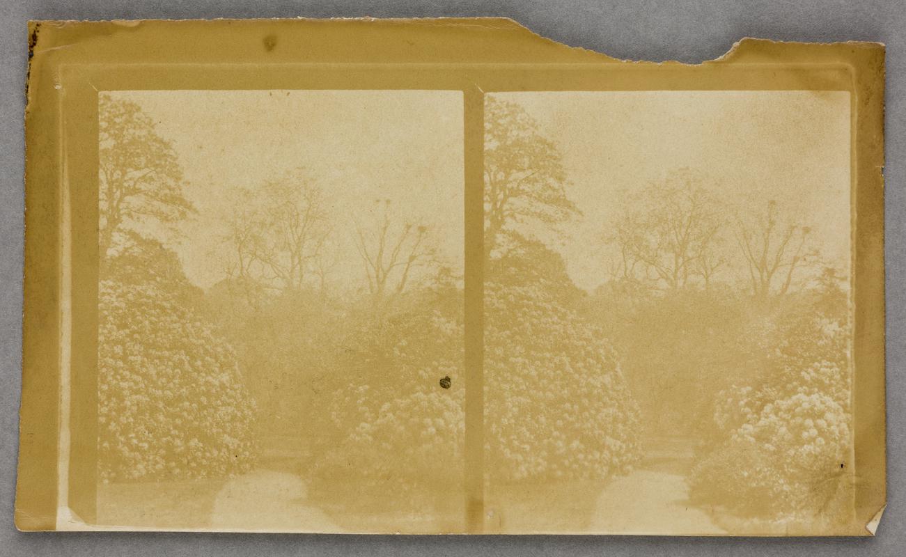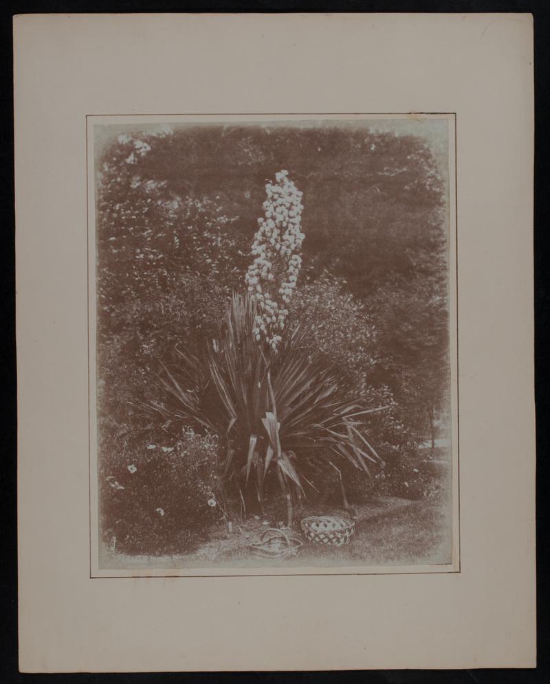 Salted paper print. Wicker chair and yucca plants in the garden at Sketty Hall.