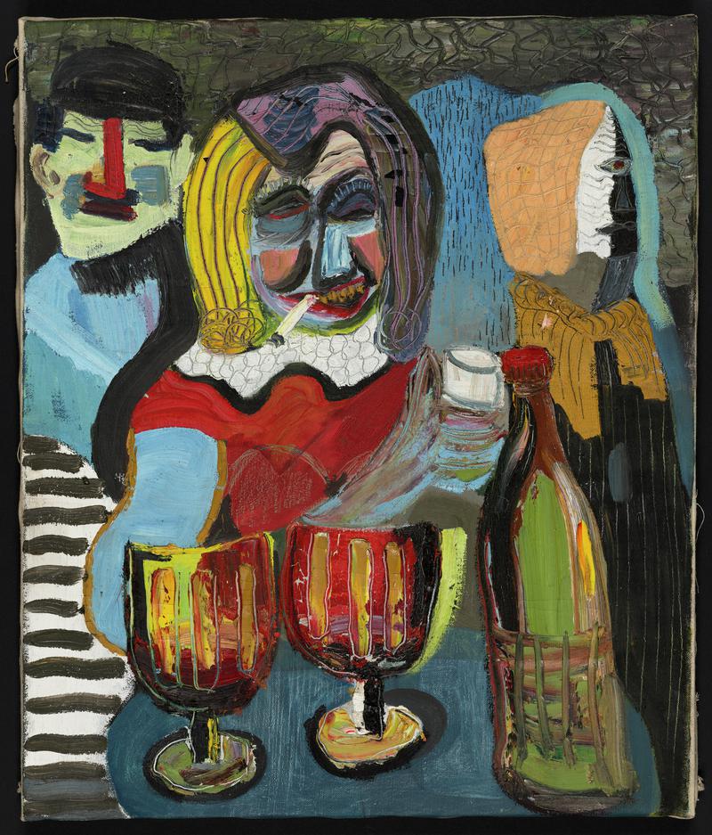 This is a sombre abstraction of the Welsh landscape. Brown and crimson oil markings sit above the horizon line, distinguishing themselves from the deep tones of the night sky. George Poole had an affinity with his origins in south Wales, regularly returning to paint in the valleys, even after his move to London.