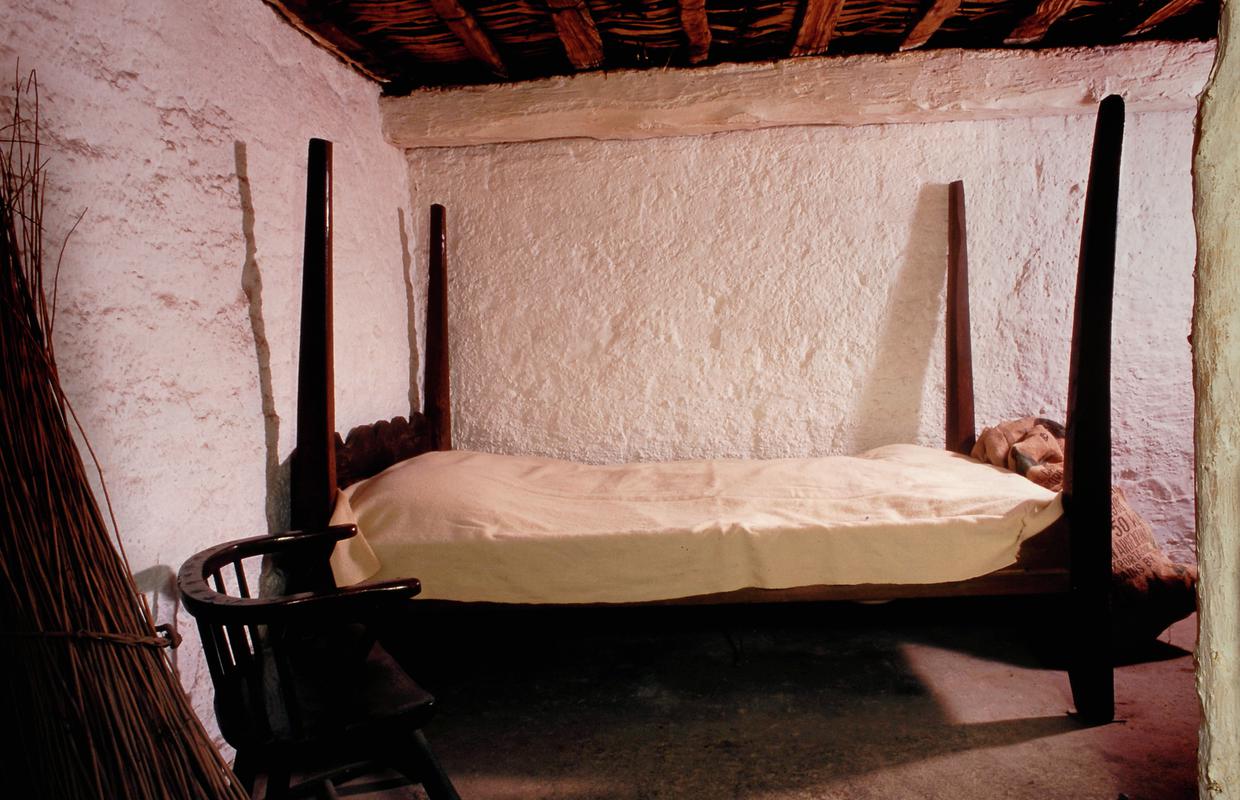 Top side rail for canopy. Bedstead has no canopy, one top side rail missing, one lower side rail destroyed because of dry rot.