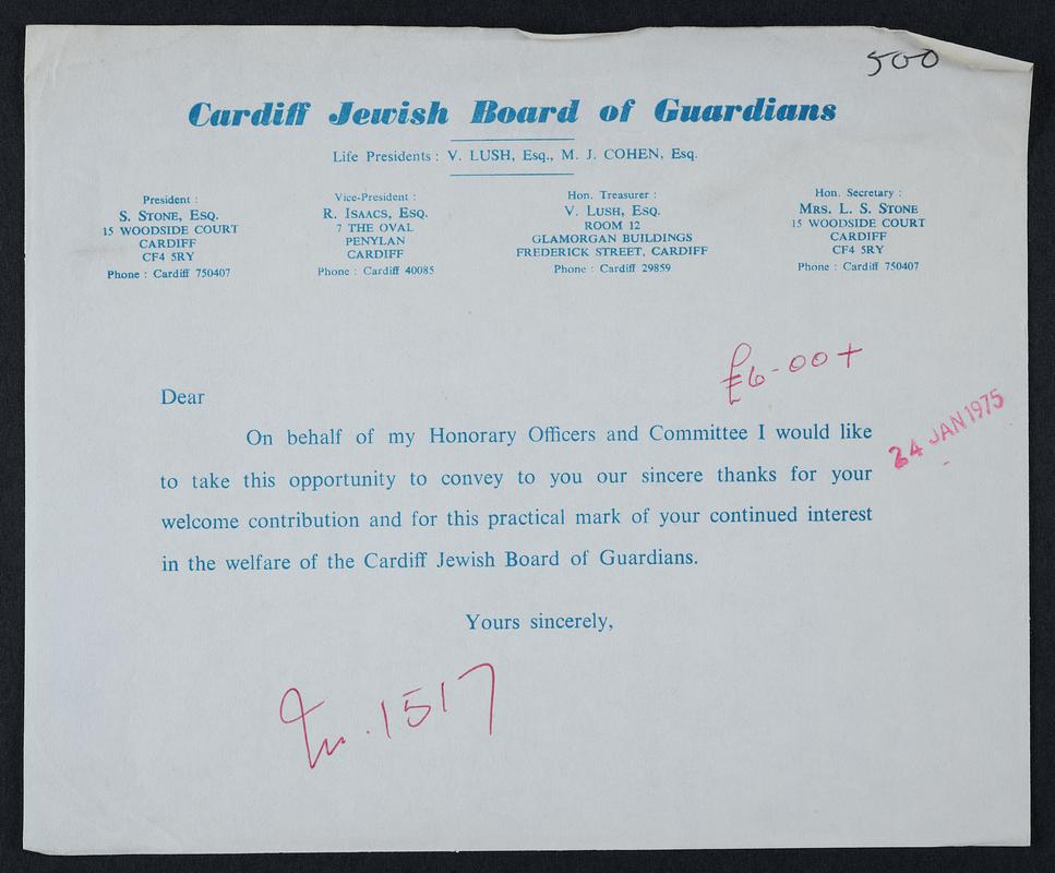 Letter re. D.H. Hughes research on C.H. Watkins