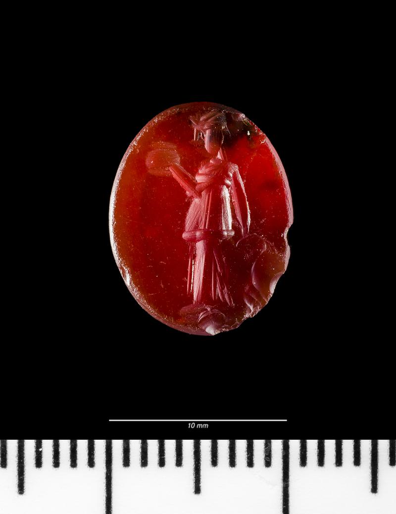 Cafwyd hyd i’r 88 gem engrafedig hyn ym 1979, y mwyafrif ohonynt yn y gwaddodd a oed yn llenwi traen mawr o dan neuadd oer Baddondai’r Gaer. Byddai’r gemau hyn yn wreiddiol wedi’u gosod mewn modrwyan bys, a chaent eu defnyddio fel seliau neu swynoglyddion I warchod eu perchenogion. Fe’u gwnaed gan grefftwyn hynod o grefftus a weithiai ar raddfa fechen iawn heb gymorth chwyddwydr. Mae’r gemau wedi’u hengrafu ag amrywiaeth eang o dduwiau, peronlidau a symbolau.