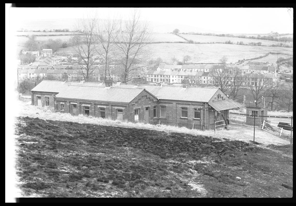 Black and white 35mm film negative showing two general views of Nantgarw Colliery.