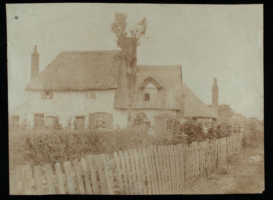 Salted paper print. View of buildings in South Bridge Street, Edinburgh. Shops shown in photograph are: J&W Peacock, tailors / William Oliphant & Sons booksellers / Peter Scott clothier & shirt merchant / Foyer. Hatter / Trimming Warehouse. Top two corners clipped.