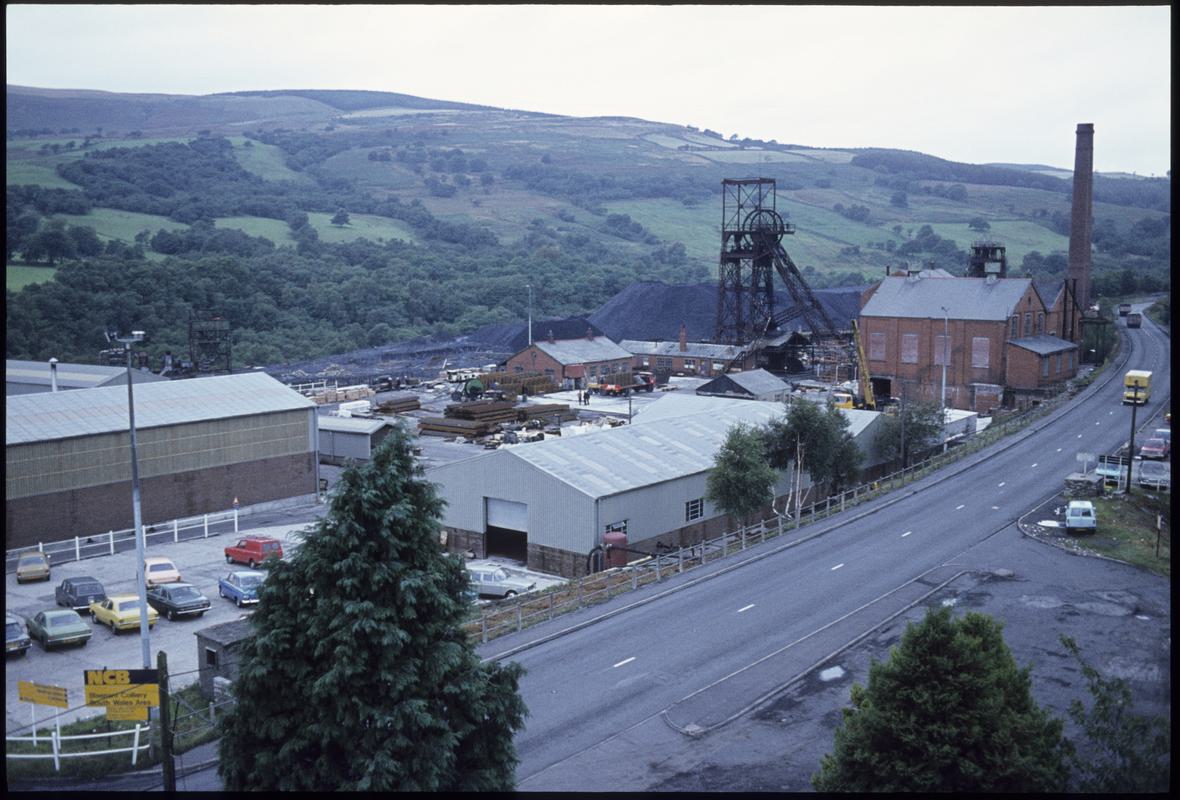 The three of Blaengwrach Colliery show a general view of the mine and a methane boring drill and operator. The nine images of North Celynen Colliery show the pit bottom, pumping station and chain hauled shearer on the coal face, 1970s.