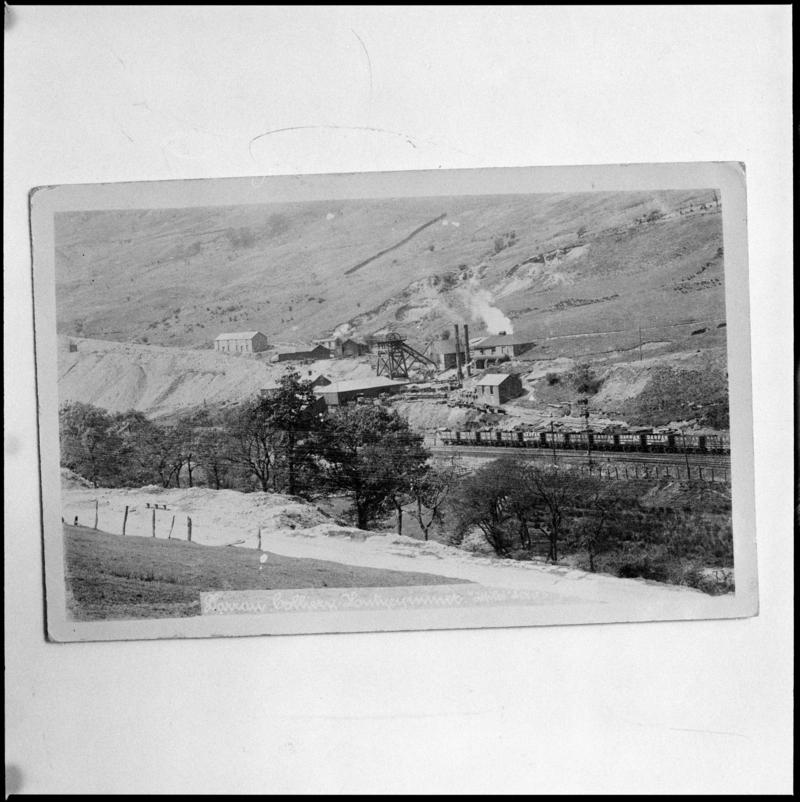 Black and white film negative of a photograph showing the scene at Universal Colliery, Senghenydd following the disaster of 14 October 1913. Caption on photograph reads 'Welsh pit disaster. A little mother waitingfor news'. 'Sen 1913' is transcribed from original negative bag.