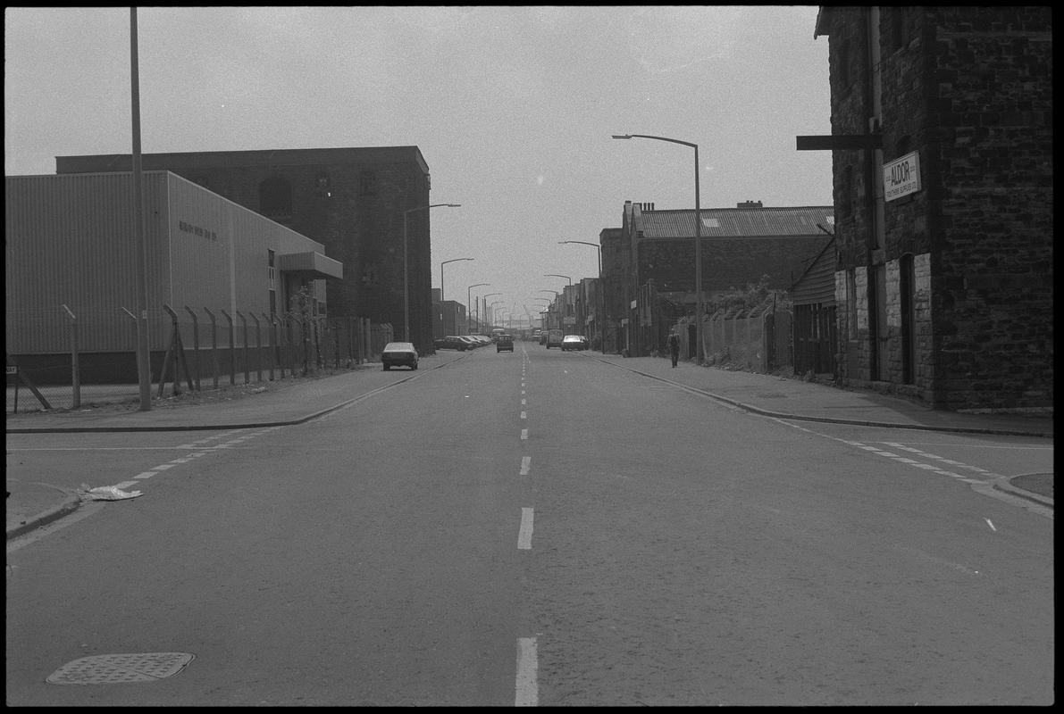 Aerial view of Ninian Park football stadium, Cardiff, February 1989.
