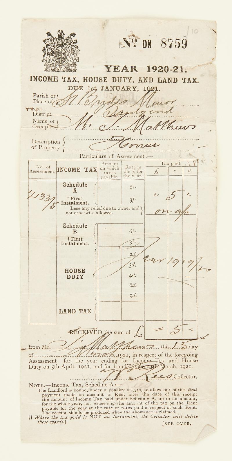 THE MRS F.M. EDMUNDS COLLECTION (Rhymney, Monmouthshire) : One of two tax assessment notices for Parish of Rhymney. Dated 1818.