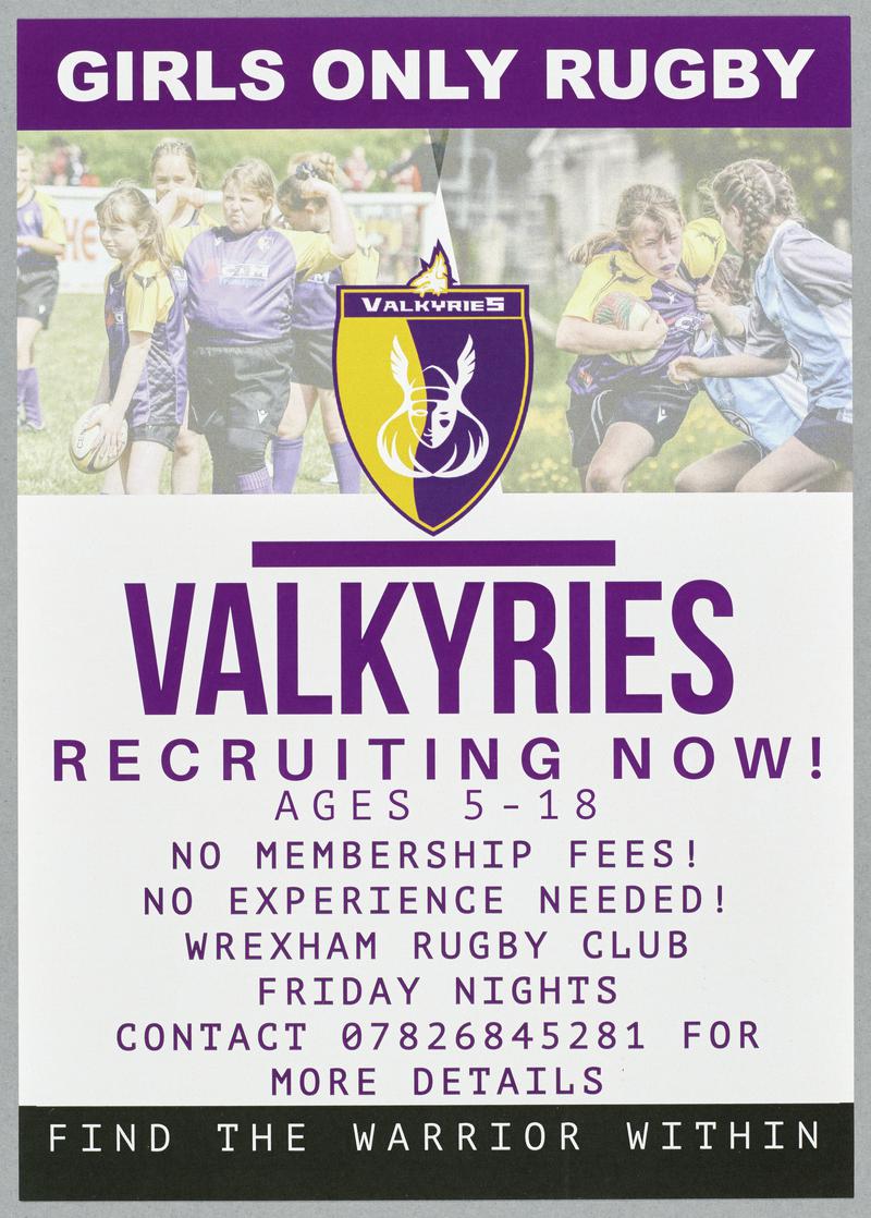 Leaflet 'Wrecsam Rhinos Inclusive Rugby'. Giiven out at the first Wrexham Pride, Saturday 27 July 2024. Collected to show the range of free promotional and advocacy material available at Pride events.