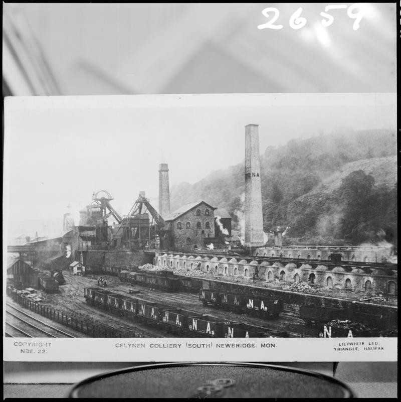 Black and white 35mm film negative showing Bargoed Colliery, 20 May 1977. 'Bargoed 20.5.77' is transcribed from original negative bag.