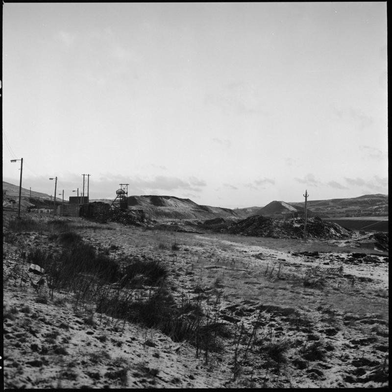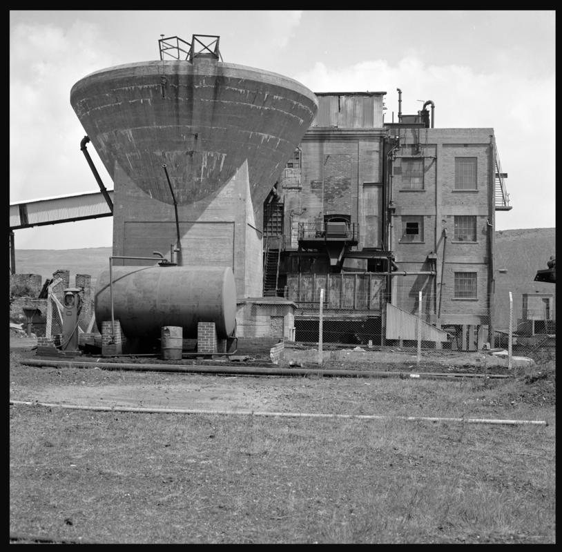 Black and white 35mm film negative showing Bargoed Colliery, 20 May 1977. 'Bargoed 20.5.77' is transcribed from original negative bag.
