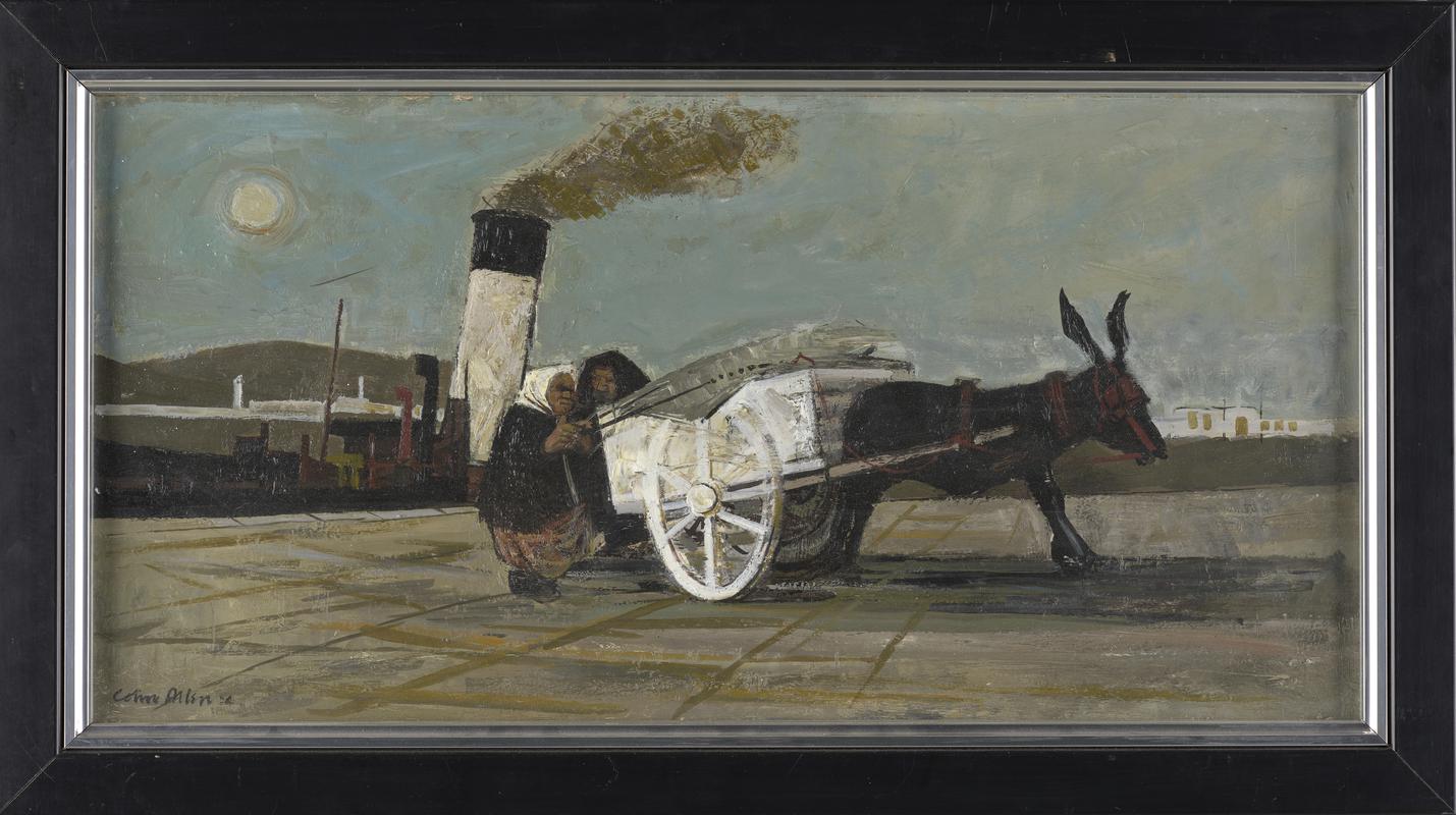 Short dashes of paint convey the activity of a busy market. Areas of bare paper show through where Boudin rushed to depict the momentary impression. A contrast to his modern beach scenes, this painting conveys a traditional rural community. Towards the end of the nineteenth century many artists spent time in remote areas of Brittany and Normandy, as a type of artistic tourism.