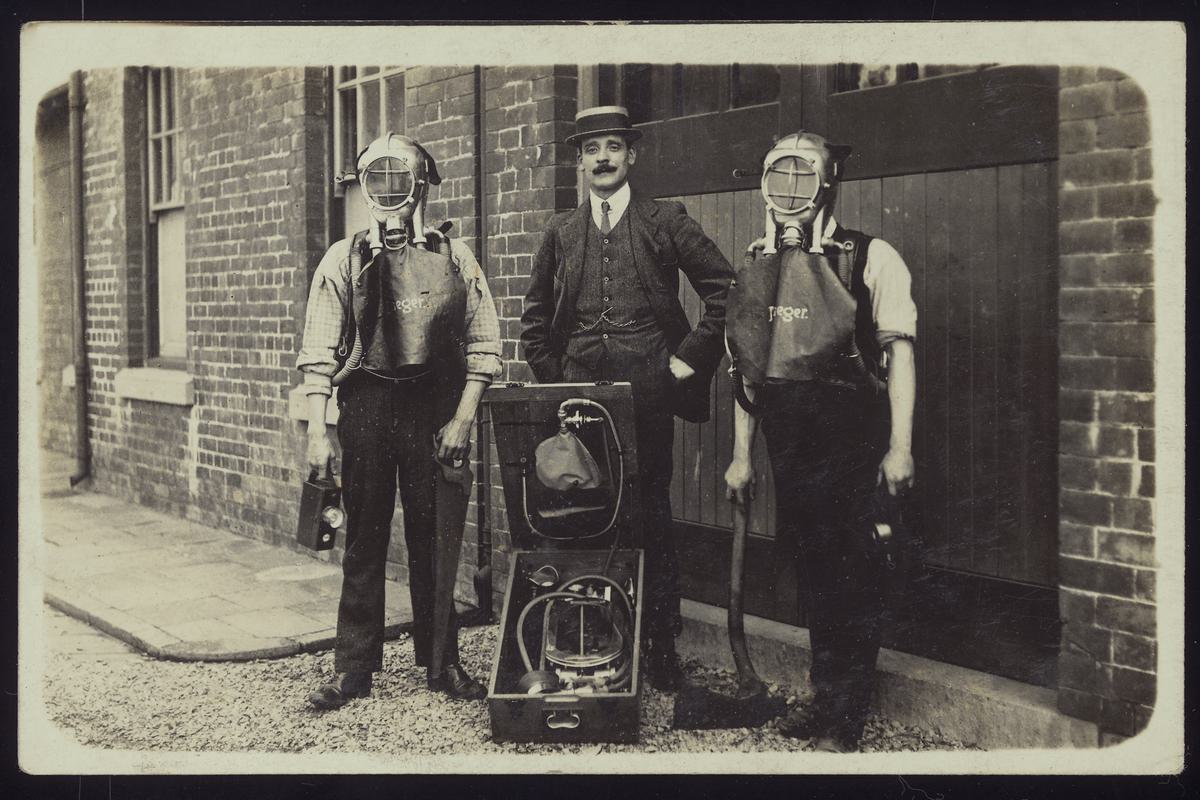 Stallwork in north Gwent about 1910. Haulier strokes the ear of a small pony with a derailed trolley in the stall. The collier looks on prepared to assist.