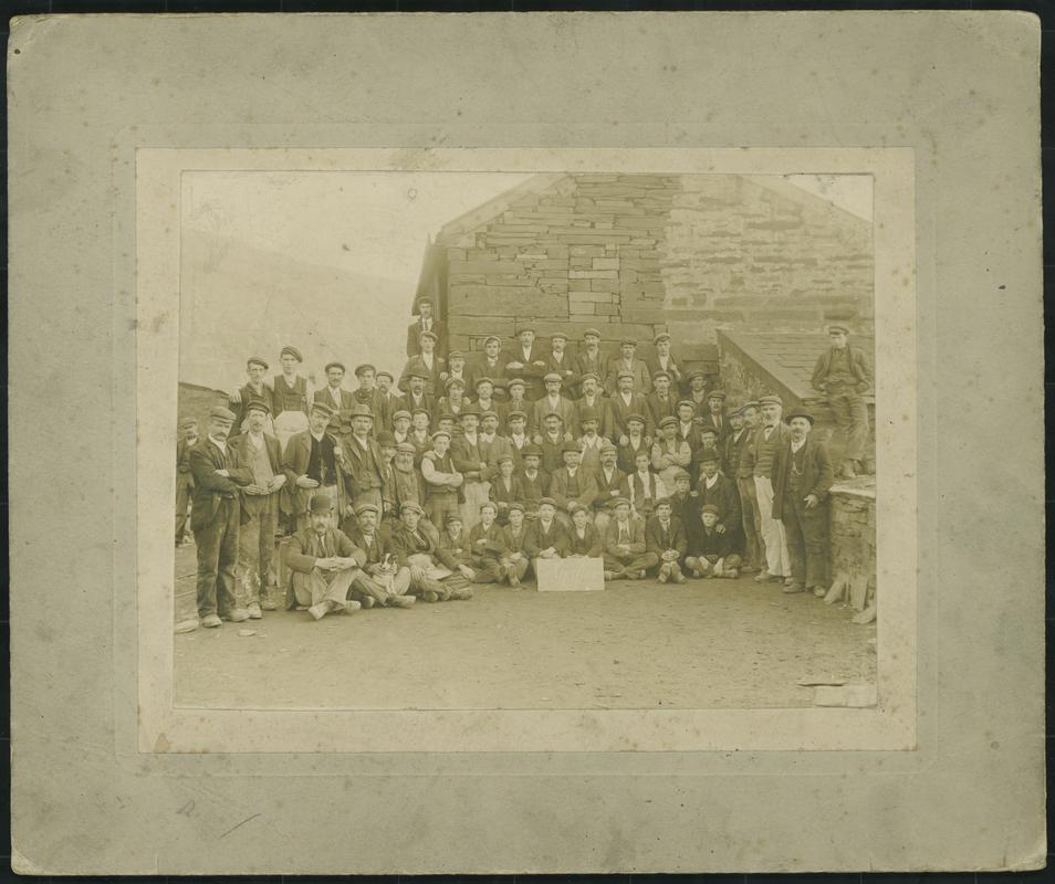 Grŵp o chwarelwyr yn Chwarel Dinorwig.