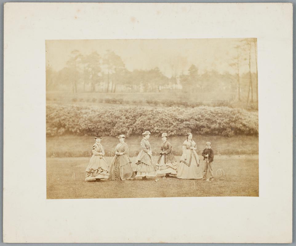 Studio portrait of two of Robert Thompson Crawshay's daughters. Card print mounted in gold card window mount.