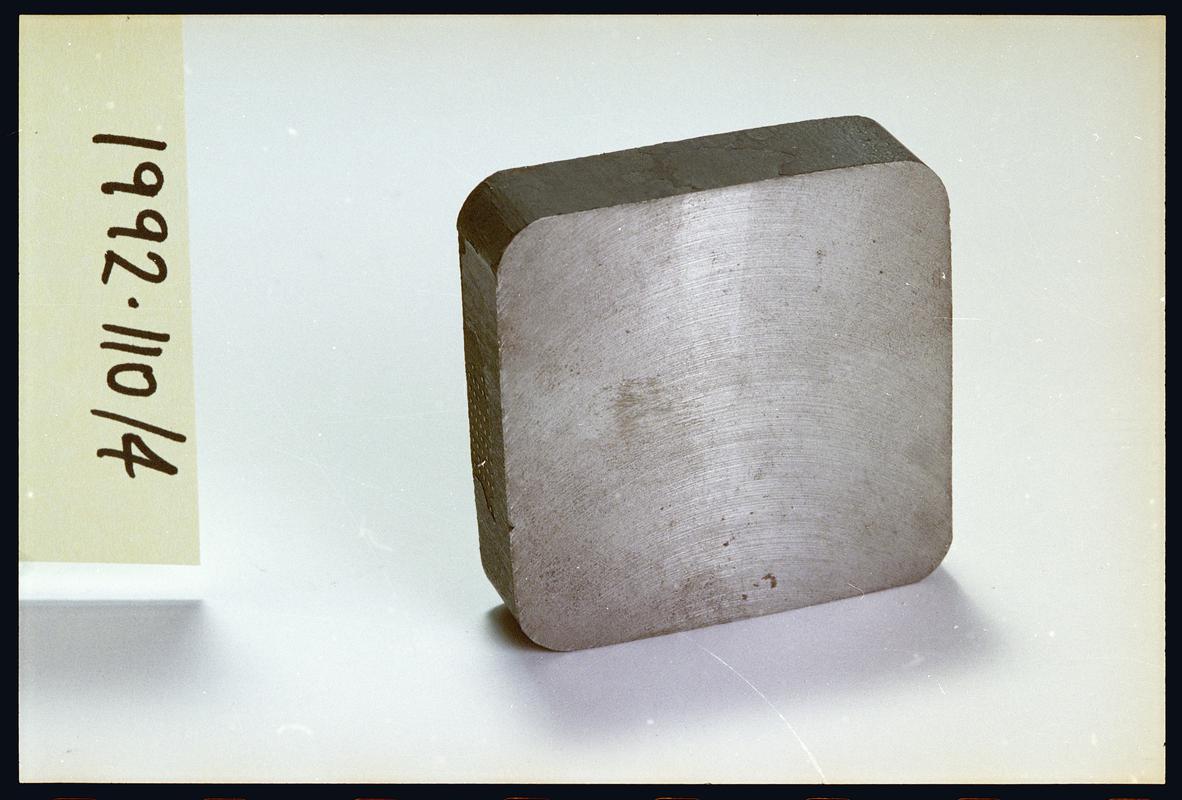 Steel billet sample cut from East Moors steel works - last billet produced before closure. Melting Shop at East Moors in operation 1 January 1936 to 20 April 1978.