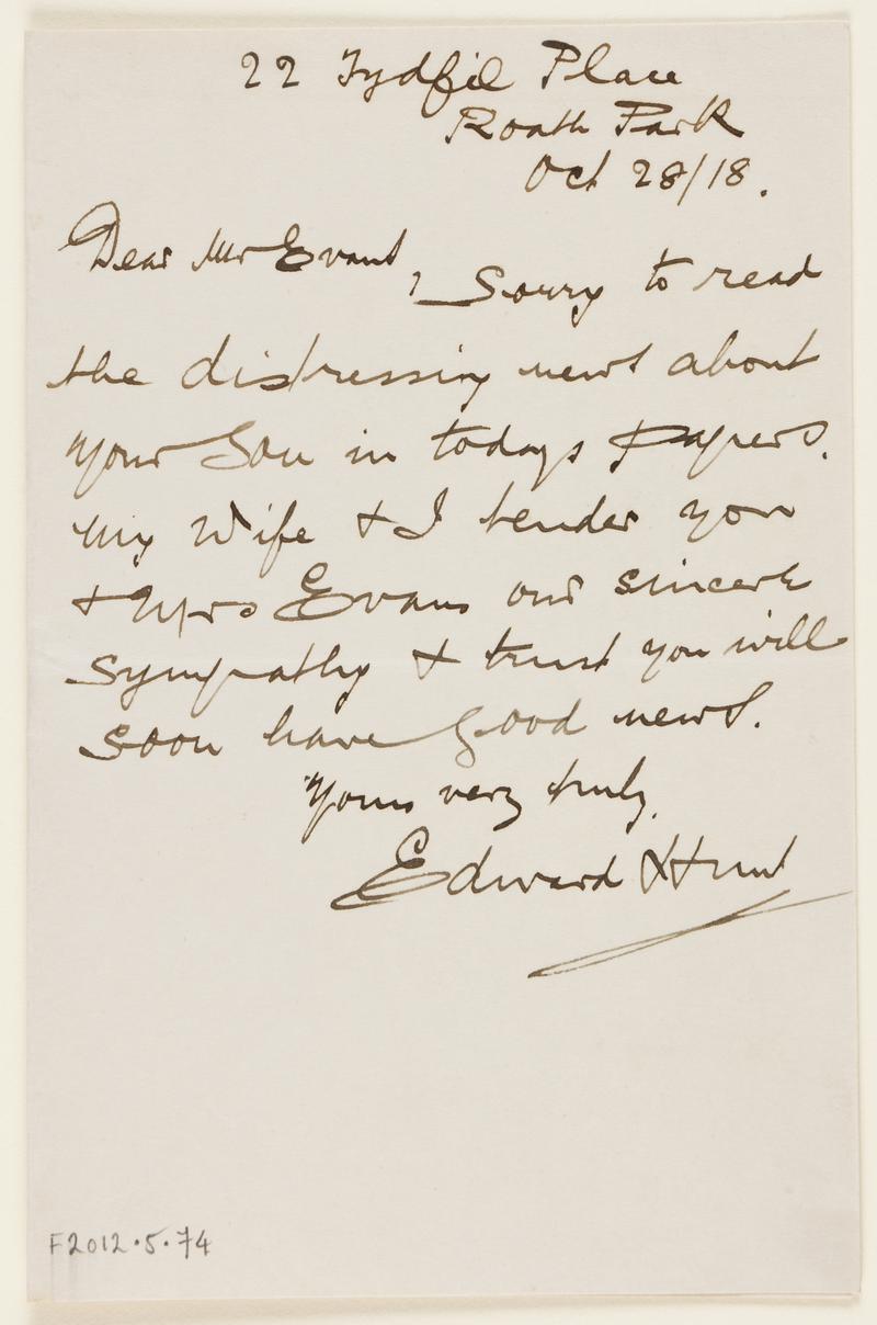 Details taken from accession card First World War