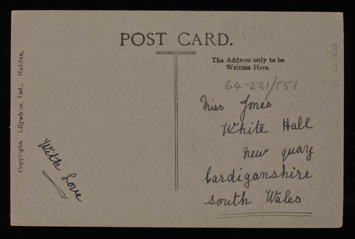 Black and white postcard of "Corinne Griffith - A First National Star". Addressed to Miss C.A. Valdivia Jones of New Quay, with a sketch. No postmark.