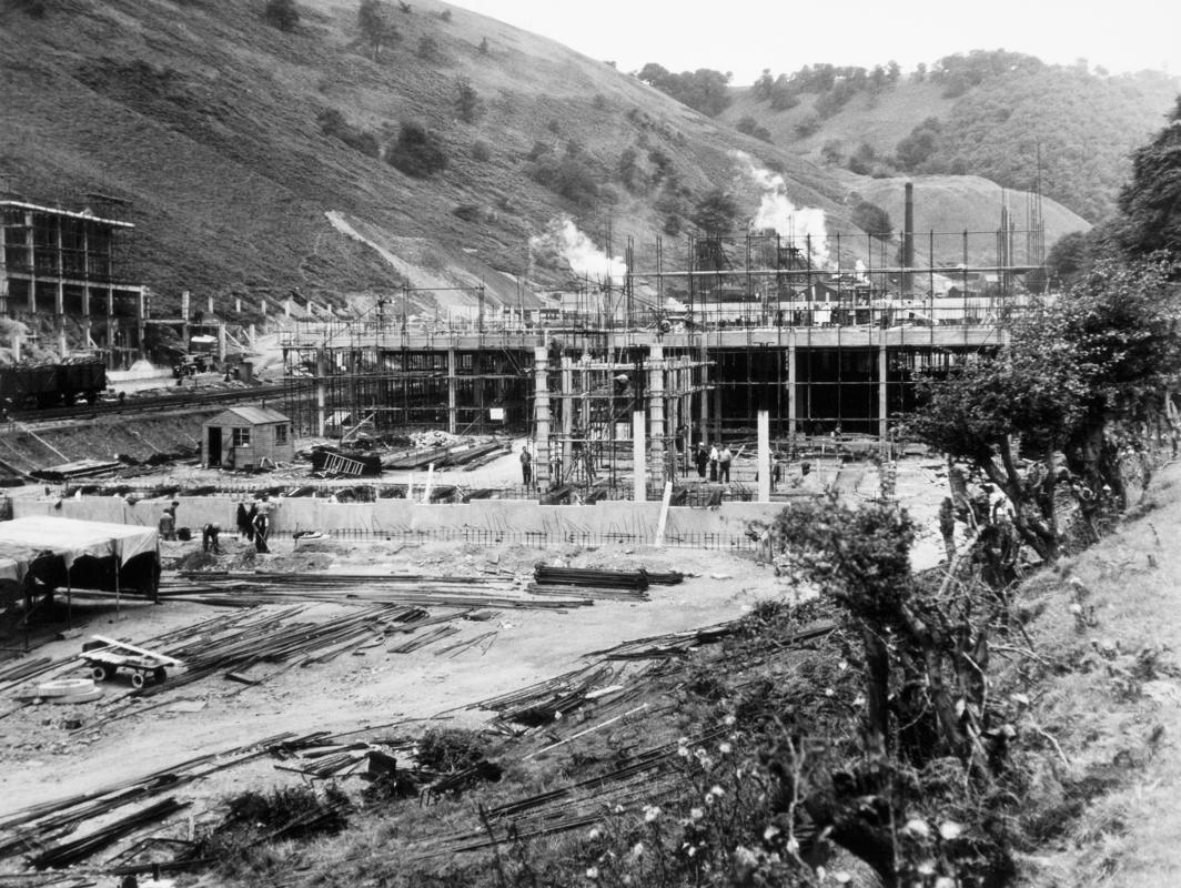 Black and white photograph showing surface construction work in progress at Hafodyrynys New Mine.