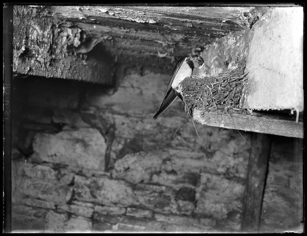 3 young Merlins (Falco columbarius) in nest, near the mouth of Ogmore River, Vale of Glamorgan. Photographed 29 June, 1919.