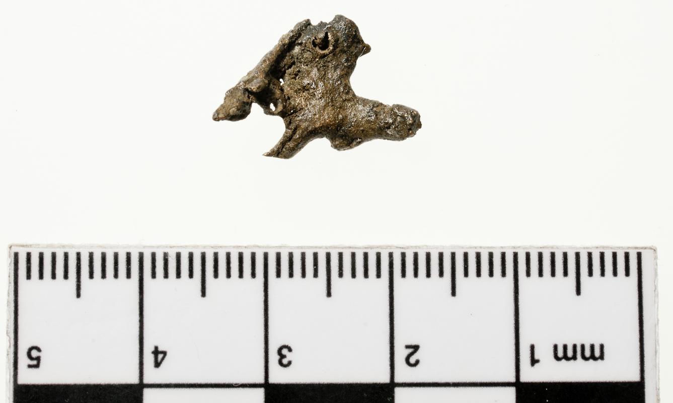 Large pennanular torc or brooch with waisted terminals. At the apex of the frame there is a slight recess and the remains of a ?pin.