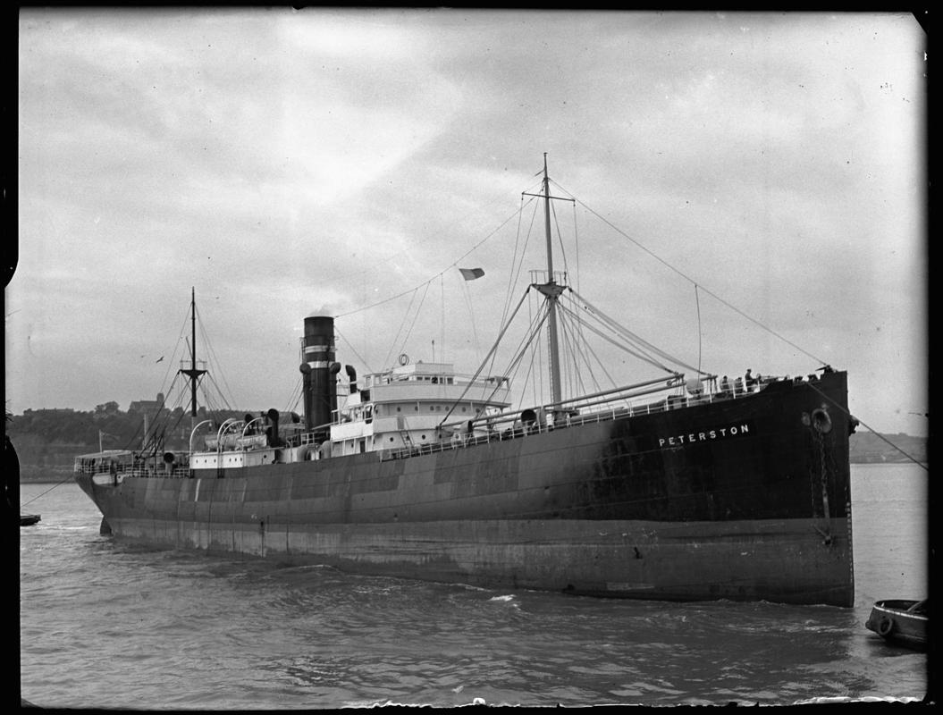Three quarter Port Bow view of S.S. PETERSTON, at Cardiff Docks, c. 1947/1948.