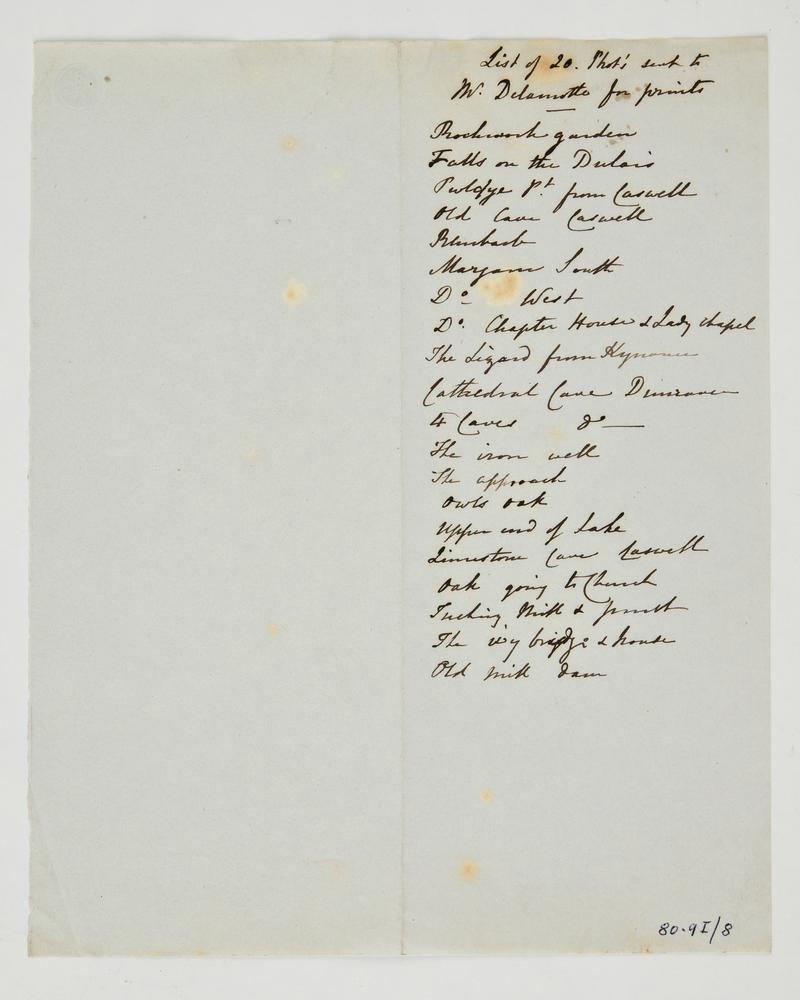 Salted paper print. Woodland view showing tree roots in a stream. All corners aof the photograph have been clipped.