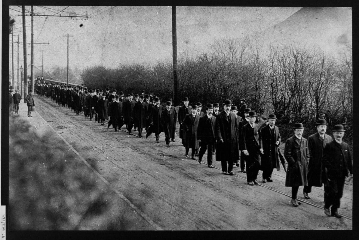 Haulier and Mate, Tynybedw Colliery. William Fynn and his young "butty" pose for a studio photograph in their working outfits. The harness was traditional and held the pin which connected the "shaft" on the horse to the "gun" attached to the tram. The scarf of the senior has the traditional haulier's knot.