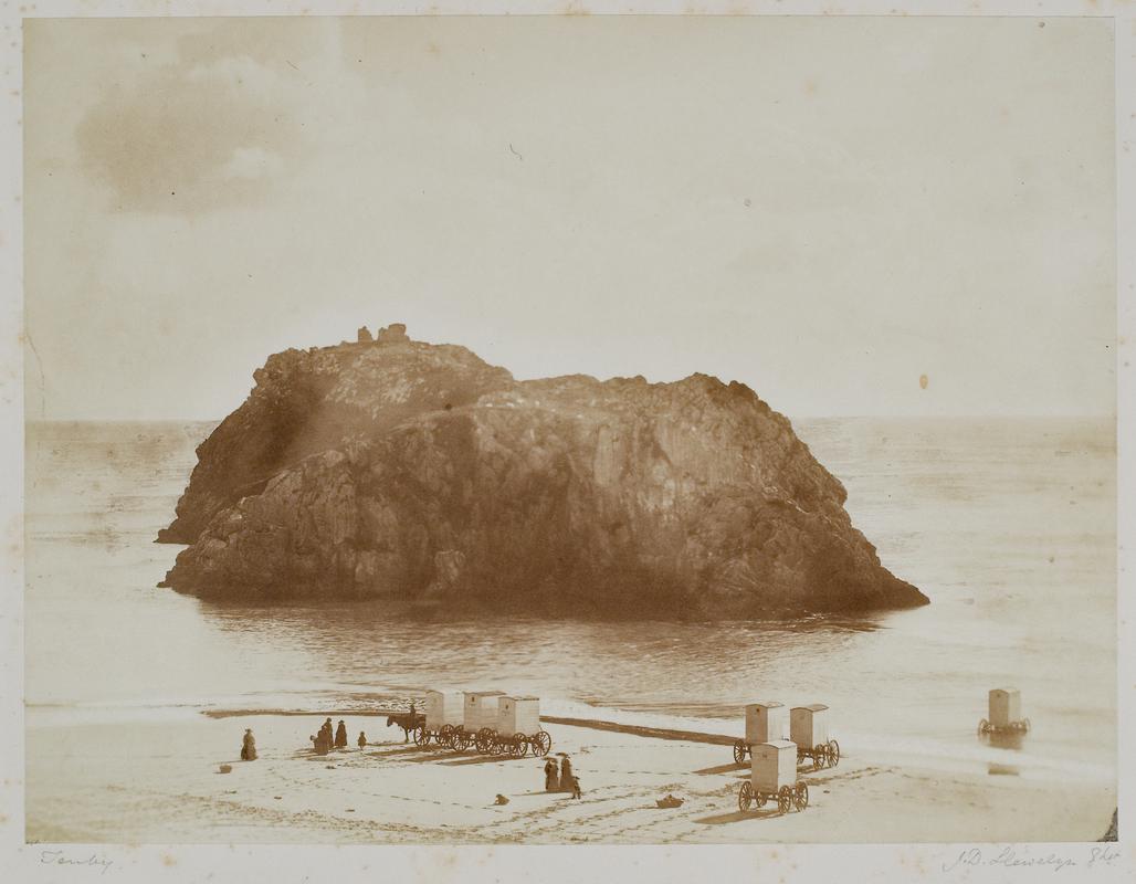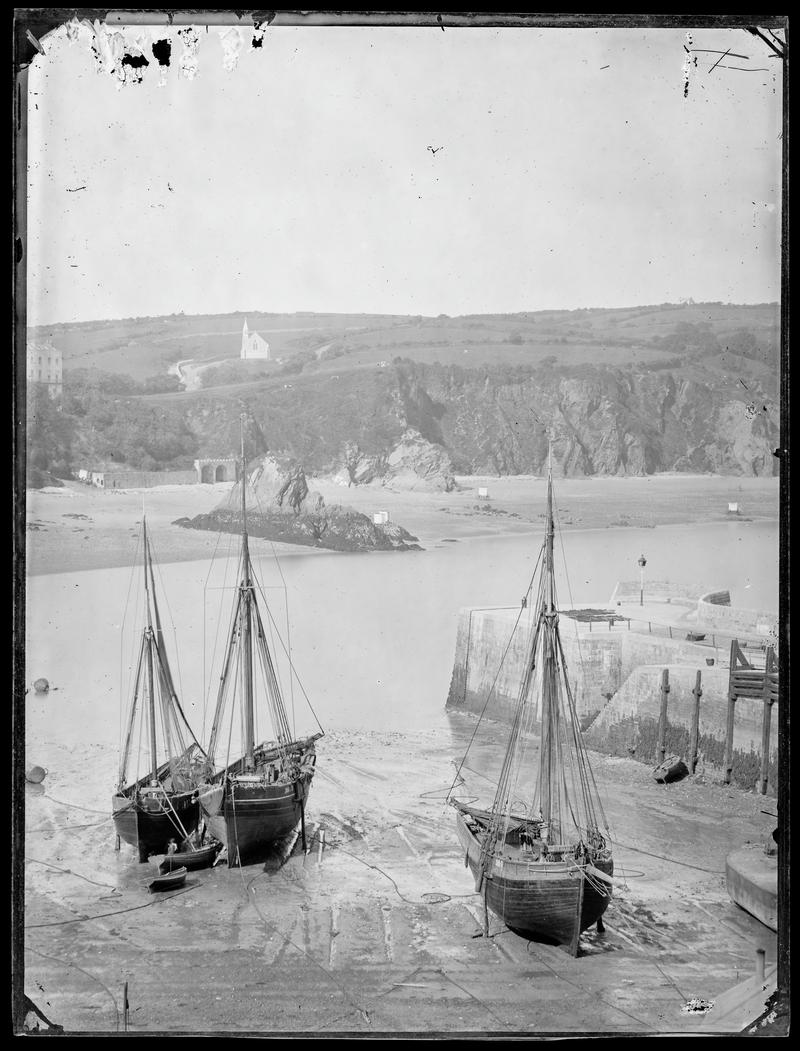 Collodion glass negative of Tenby taken from St. Catherine's Island.