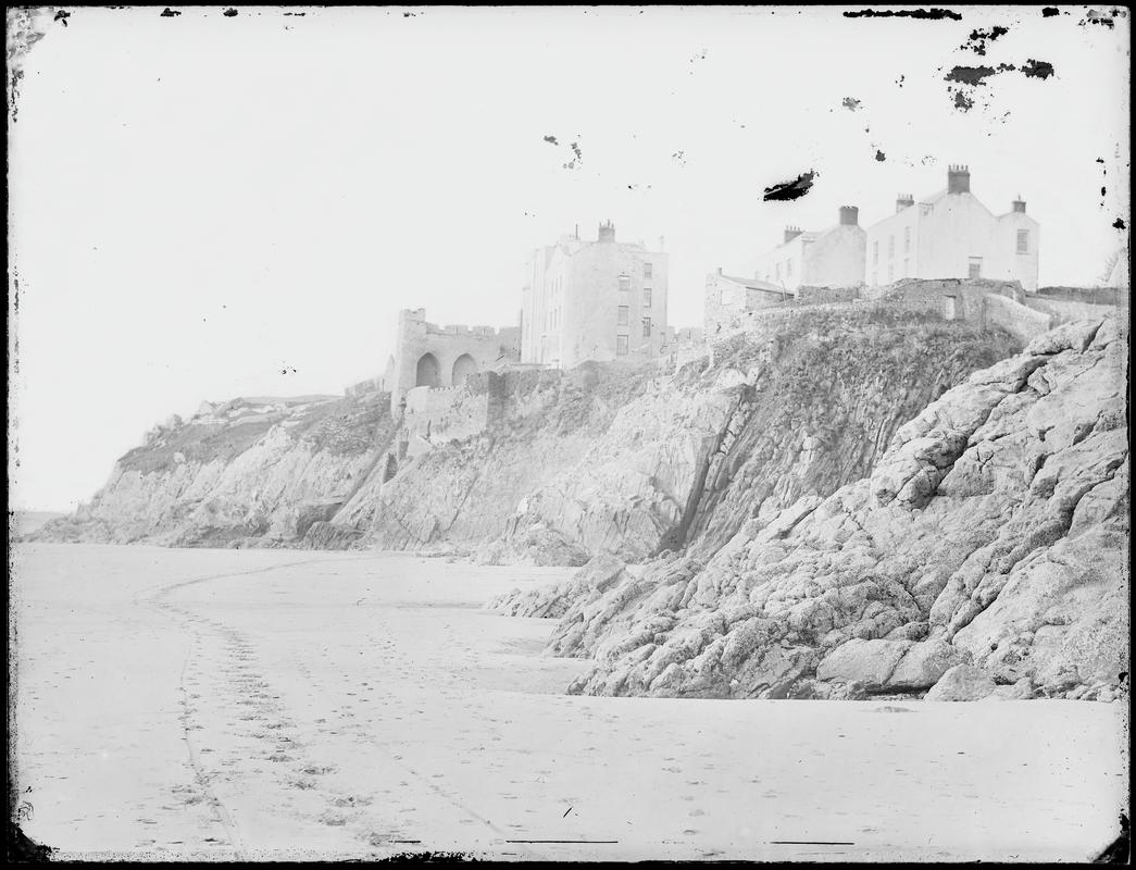 Collodion glass negative of Tenby taken from St. Catherine's Island.