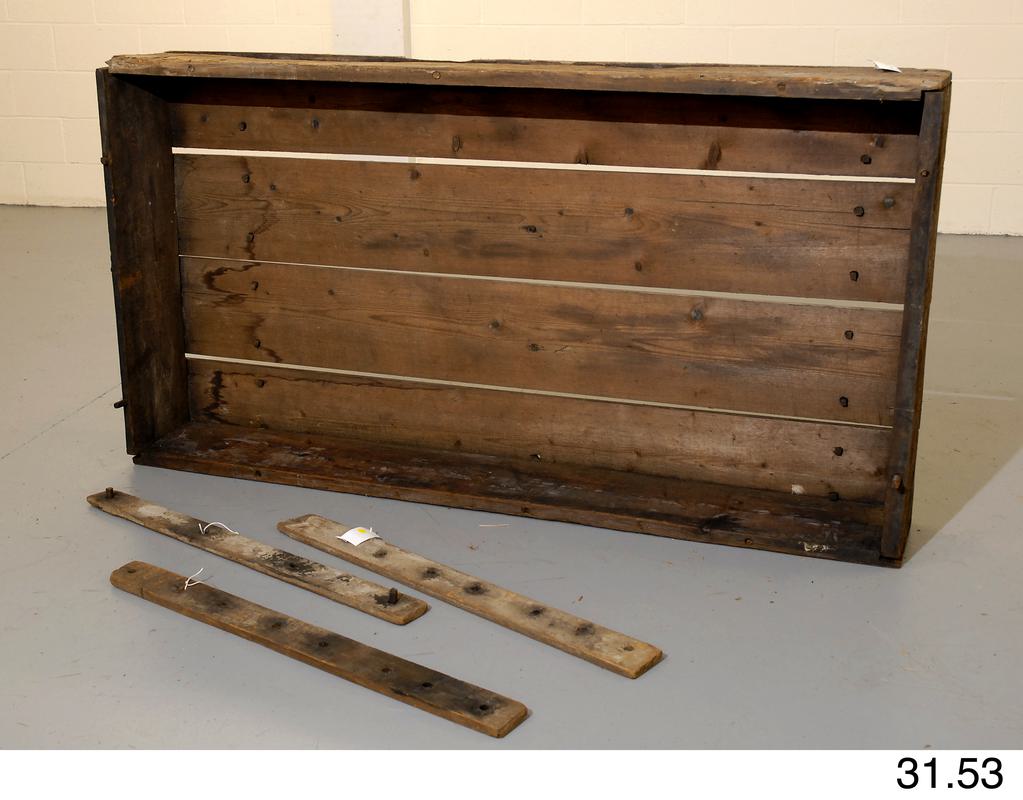 One of three wooden wall brackets.