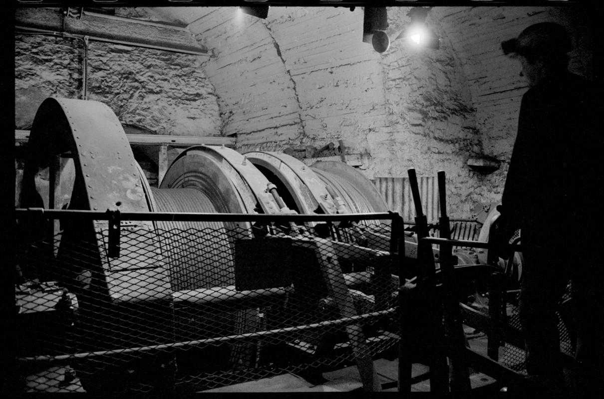 Black and white film negative showing powered supports and shearer on V44s face in the Gellideg seam, Deep Duffryn Colliery 1978. 'Deep Duffryn 1978' is transcribed from original negative bag.