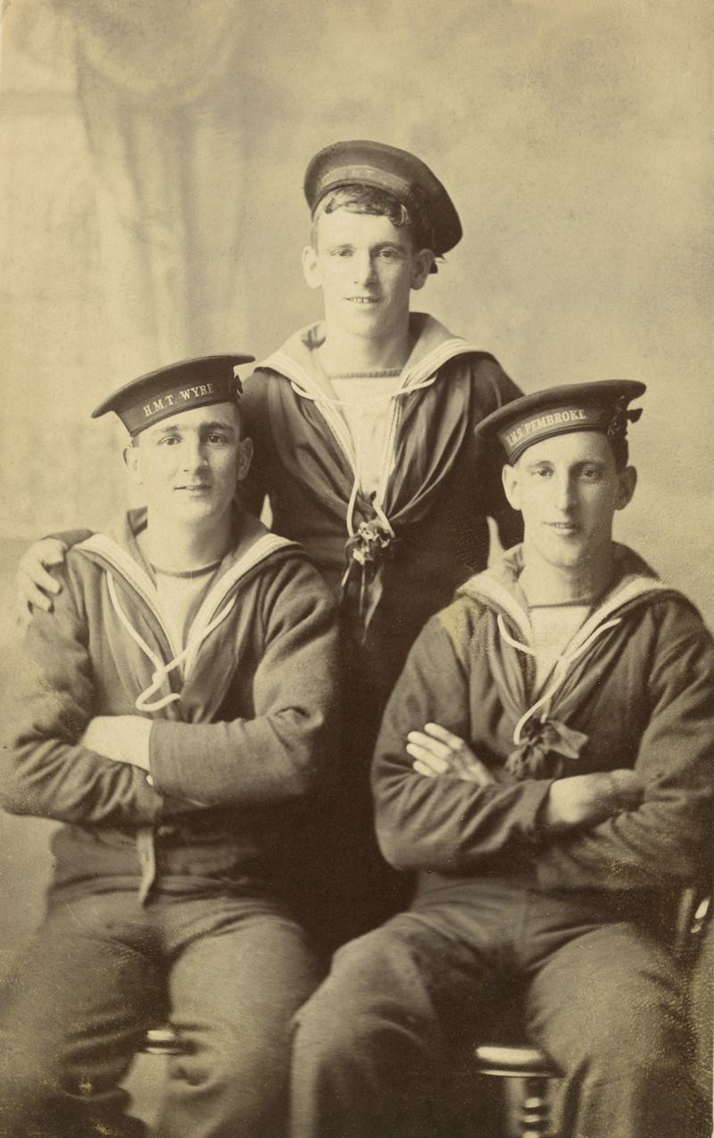 Photograph of Sir William Reardon Smith and Lady Ellen on the MARGHERITA with cadets. Douglas Smith (Dug, their second son) is on extreme left with pipe, Grace Reardon Smith is sitting next to Lady Ellen, and one of their other daughters is standing to Sir William Reardon Smith's left.