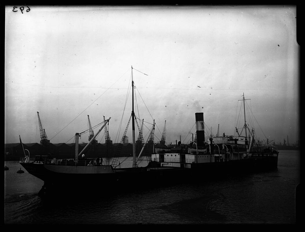 Starboard broadside view of S.S. HOYLE at Cardiff Docks.