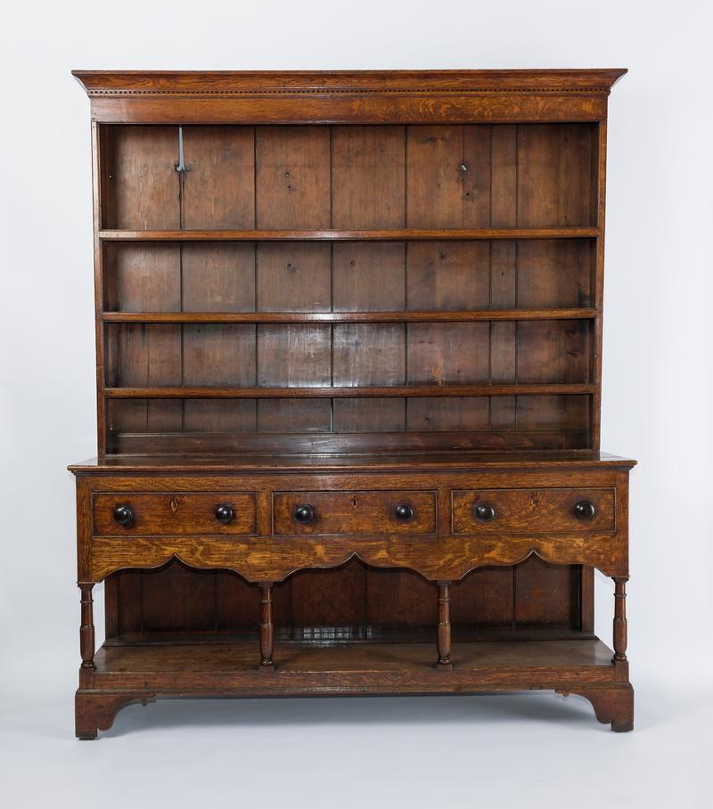 One of four hall chairs, with 66.456.3-6. With shaped solid seats and taper legs. The backs are scroll-shaped inlaid with brass and has central inset oval with painted stag crest. These are hand grips cut into backs. Stag crest of Owens. Stag crest of Evans of Rhyd-y-carw. See notes by Miss Humphreys-Owen in Acc. Correspondence.