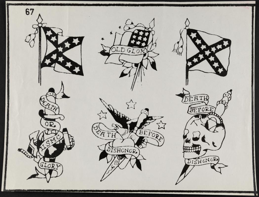 Tattoo flash on card. Various colour images including snakes and chains. Eagle on reverse.