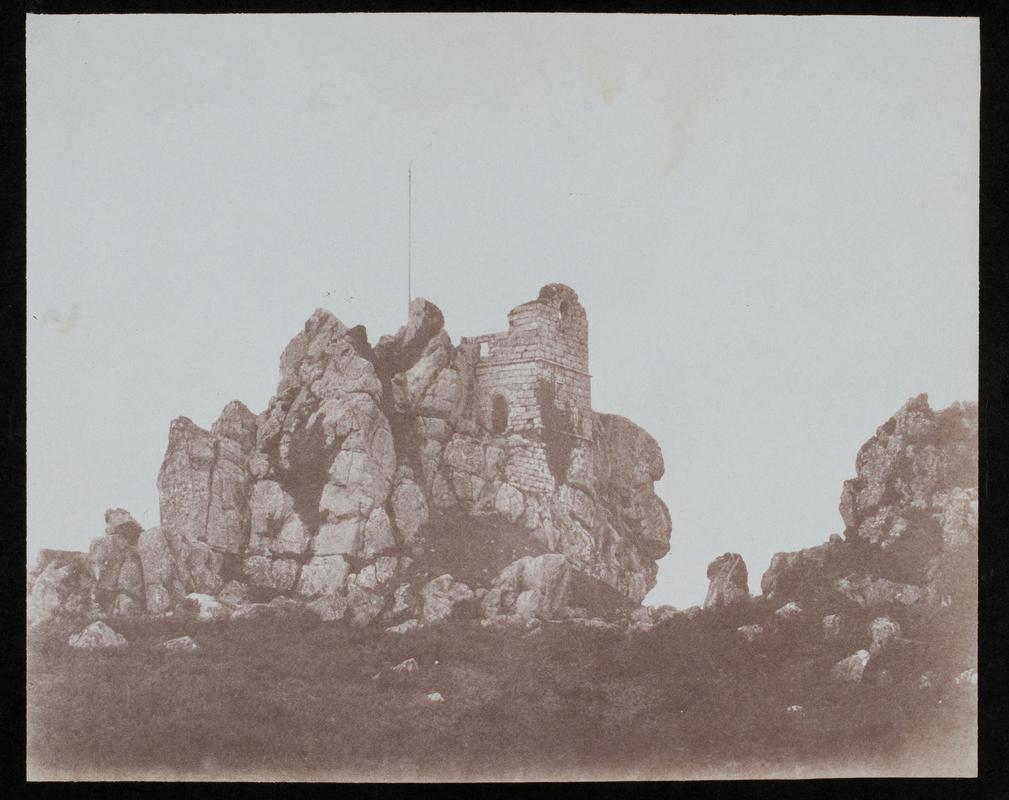 Salted paper print. Roses with leaves in a Wedgewood style vase (the same vase as shown in 80.9I/164). Vase is placed on stone floor next to pillar. Taken on the porch at Penllegare.