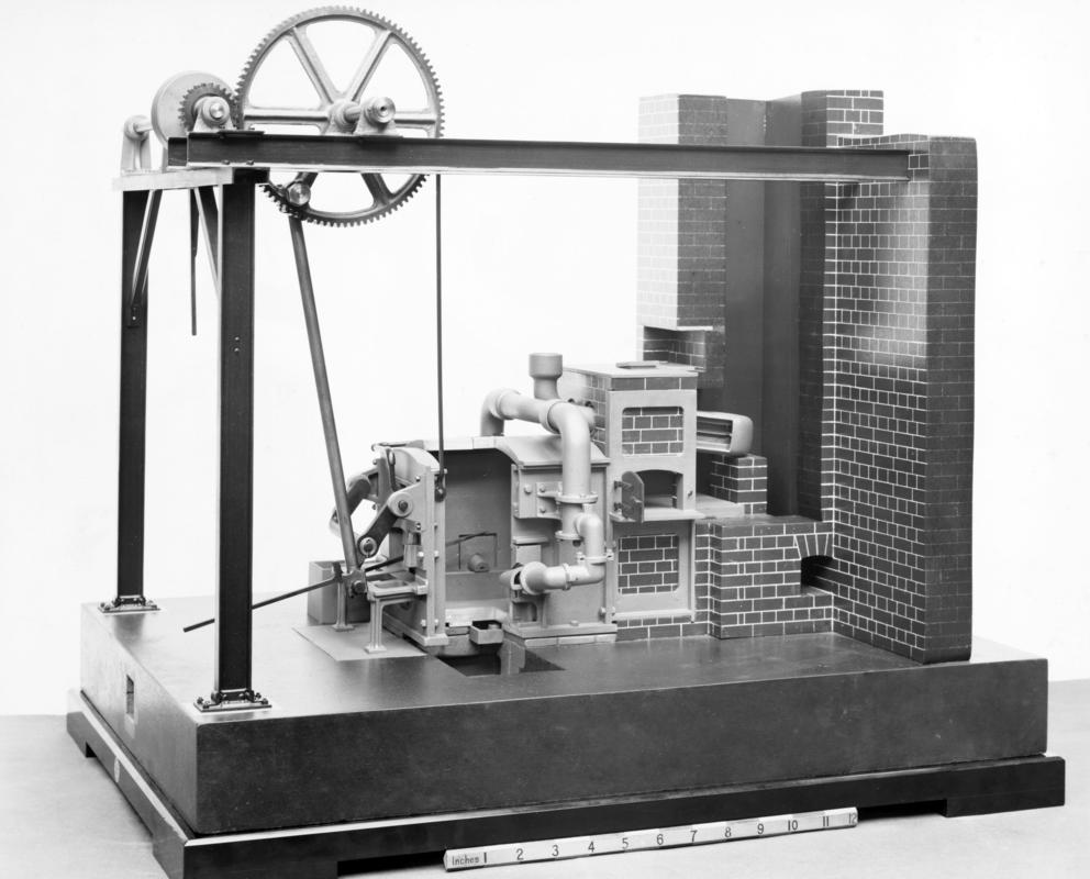 Parts from open hearth tilt furnace model in white crate and wooden box - ( possibly part of 58.341/26 open hearth melting shop ?)