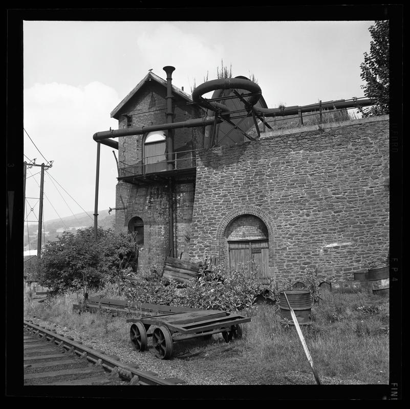 Colliery buildings and pithead gear at Lewis Merthyr Colliery, with terraced housing in the background.