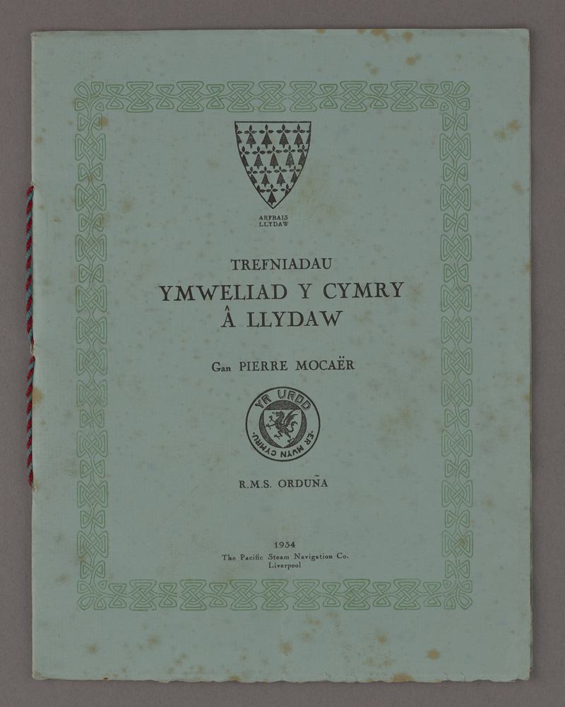 Pamffled yn gysylltiedig ag ail fordaith yr Urdd, 1934. Casglwyd gan William Humphrey Jones a oedd ar y daith.